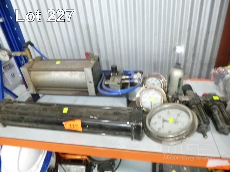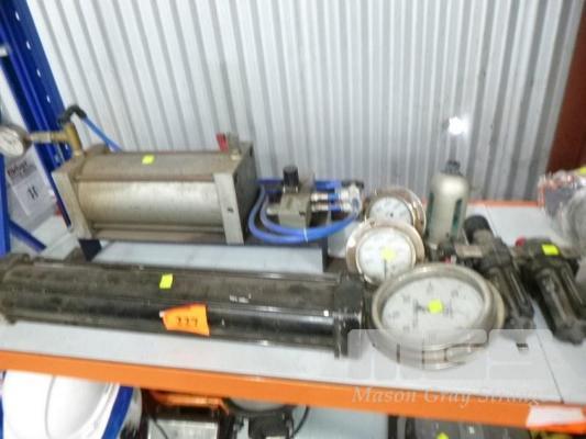 2 x ASSORTED PNEUMATIC CYLINDERS, PRESSURE GAUGES & WATER TRAPS