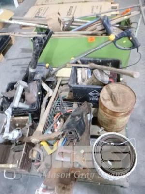 ASSORTED GARDENING & HAND TOOLS, INCLUDING, SHOVELS, HOES, SAWS, MATICKS, TROWELS, ETC 2 x PALLETS
