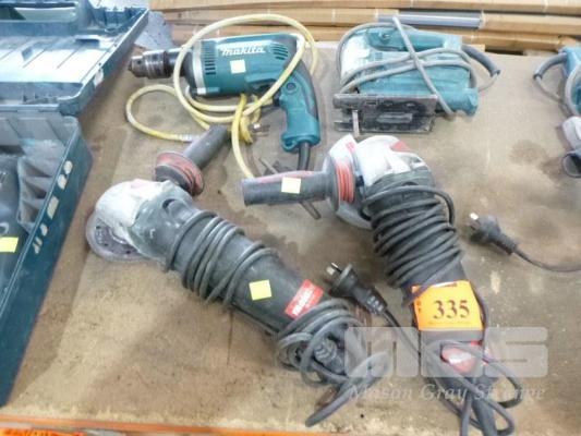 2 x 128mm METABO ANGLE GRINDERS, MAKITA HAMMER DRILL & JIGSAW