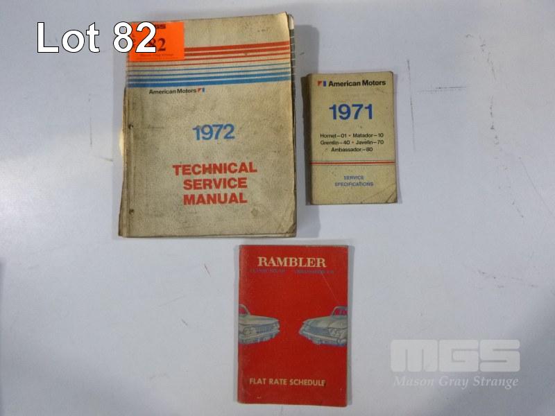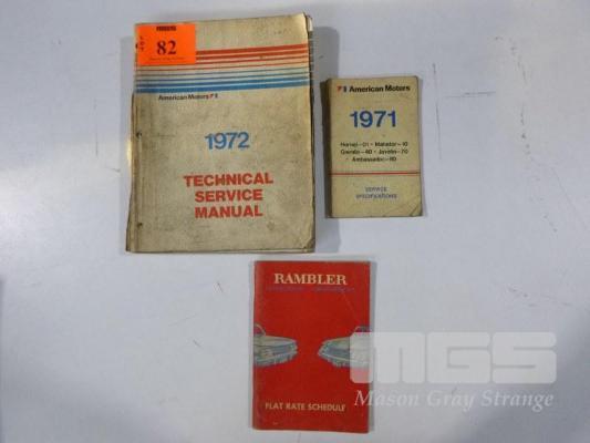 AMERICAN MOTORS SERVICE SPECIFICATIONS 71, RAMBLER FLAT RATE SCHEDULE & TECHNICAL SERVICE MANUAL 72