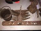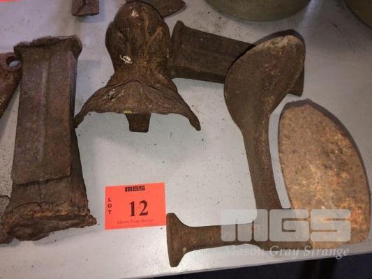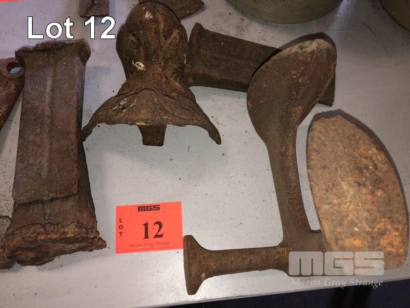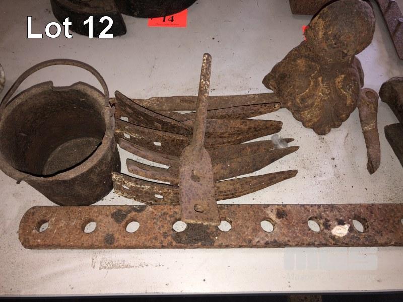 CAST IRON PIECES, SHOE LASP. , SMALL POT, 2 WEDGES, ASSORTED LEVERS & TRIMS