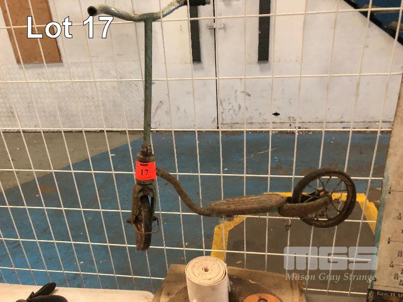CHILDS SCOOTER, STEEL FRAME & SPARE WHEELS