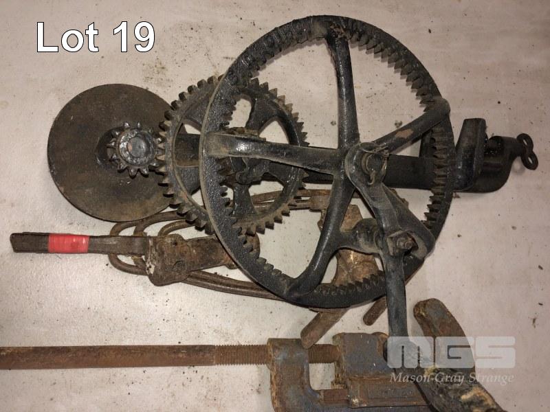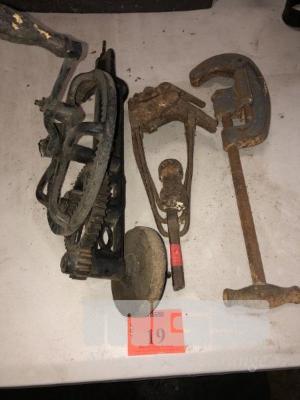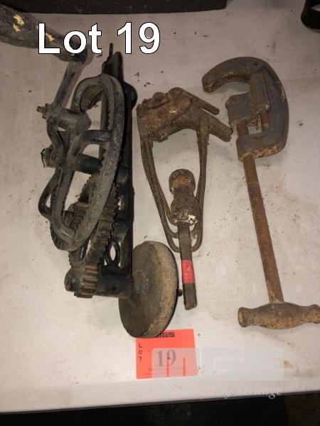 CIRCA 1900 HAND GRINDER, WIRE STRAINER & PIPE CUTTER
