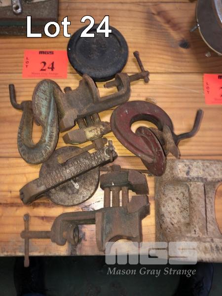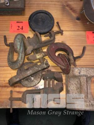 TYRE REPAIR CLAMPS, MINI PORTABLE VICE & VARIOUS CAST IRON WEIGHTS