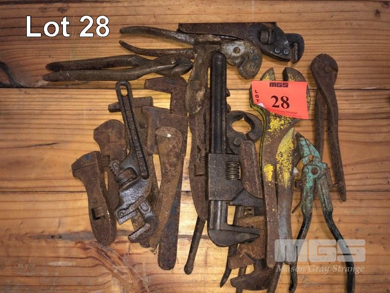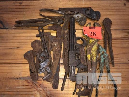 COLLECTION OLD HAND TOOLS, CUTTERS, GRIPS, ADJUSTABLES, "REED MFG", ETC