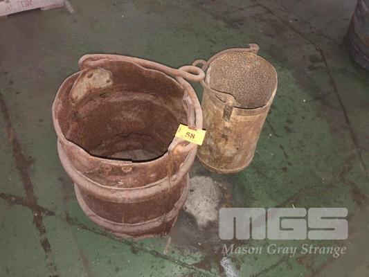 2 x EARLY CRANE LIFT POTS, APPROX 1 & 2 GALLON.