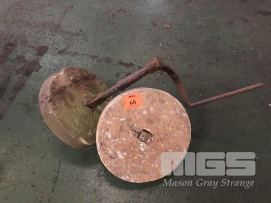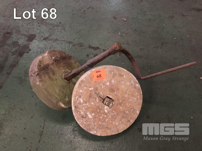 2 x OLD GRIND STONES, 380 x 80mm & 370 x 70mm
