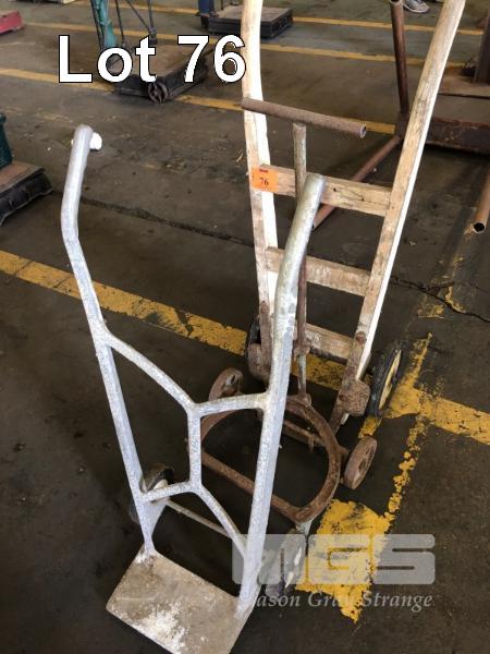 3 x SACK TROLLEYS, TIMBER, CAST & STEEL & ALLOY