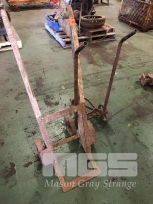 PAIR EARLY SACK TRUCKS, TIMBER, STEEL & CAST IRON