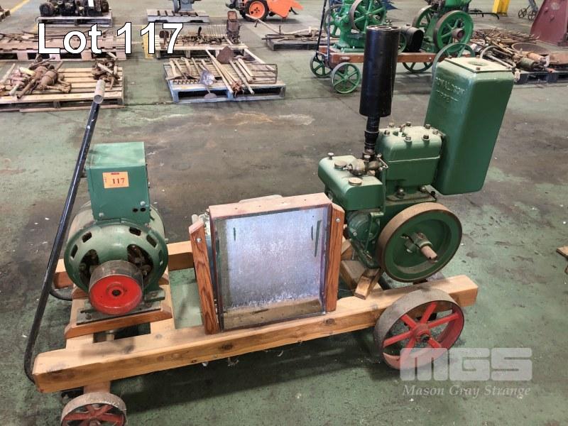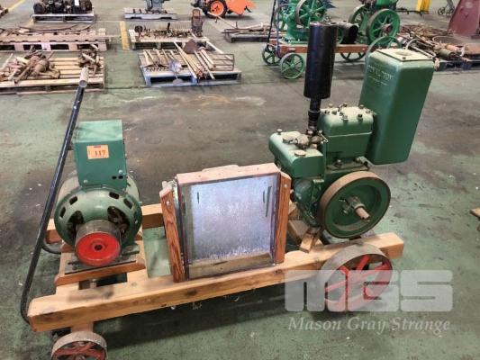 RONALDSON TIPPET SINGLE CYLINDER PETROL ENGINE WITH GENERATOR ON TIMBER CARRIAGE WITH 2 x GLASS CASE BATTERIES