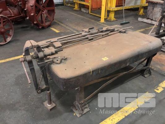 CAST IRON BLACKSMITHS WORK TABLE, 1800 x 1000mm WITH VICE & TOOLS