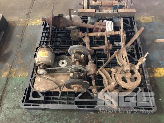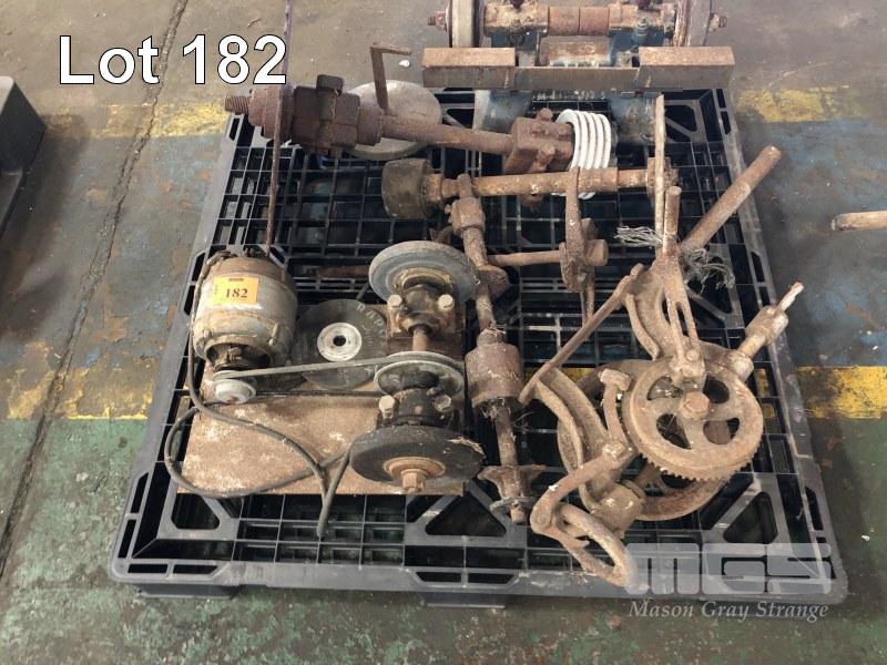 2 x GRINDING WHEEL SHAFTS & STONES LARGE TIMBER SAW BLADE & WORK SHAFT & POST MOUNT HAND DRILL