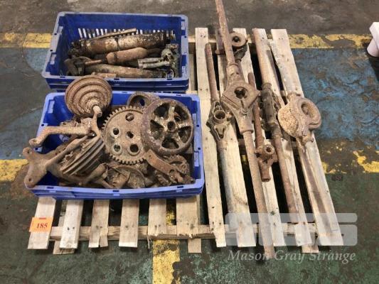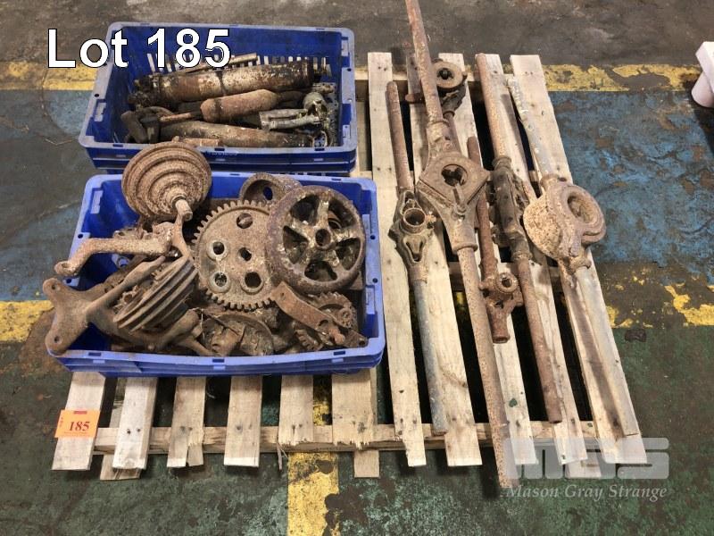OLD DIE STOCKS, ASSORTED GEARS & PULLEYS, GREASE GUNS, CONTENTS 1 x PALLET