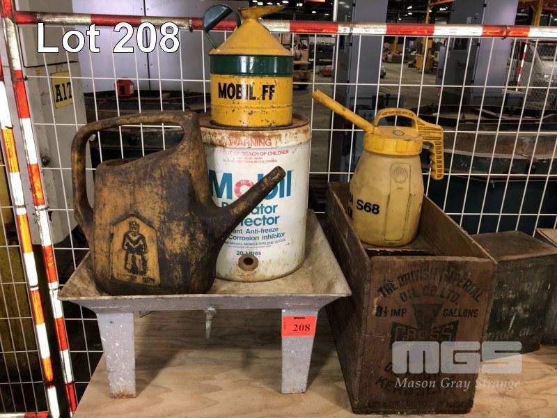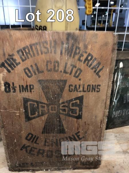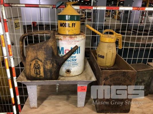 BRITISH IMPERIAL OIL CO CRATE, MOBIL OIL DRUM & STAND & 3 FILLER UNITS