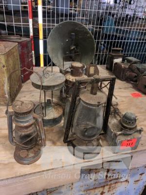 KERO LAMPS & HEATERS, BRASS & STEEL, (TOTAL 7 ITEMS)