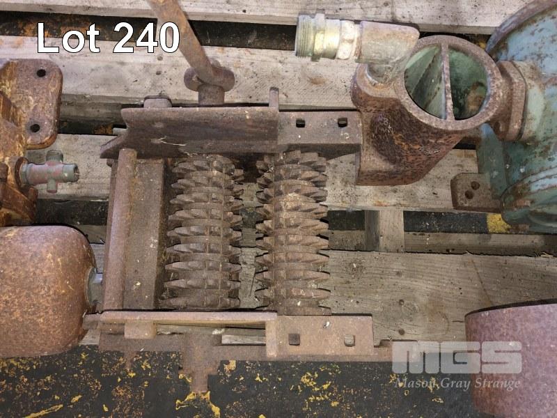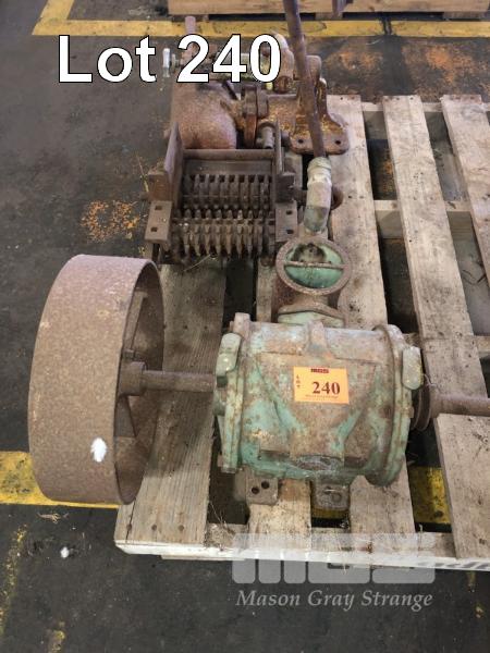 COLLECTION OLD FARM EQUIPMENT, FLAT BELT DRIVE WITH PUMP, SF9884, 272, CHAFF FEEDER & HAND PUMP