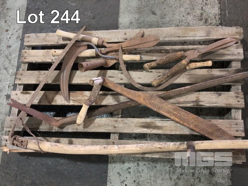 VINTAGE SCYTHES, LONG &SHORT SHAFT WITH HAND CLIPPERS