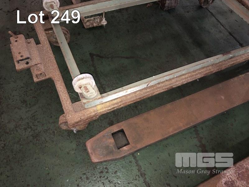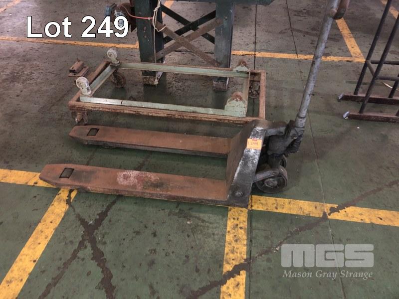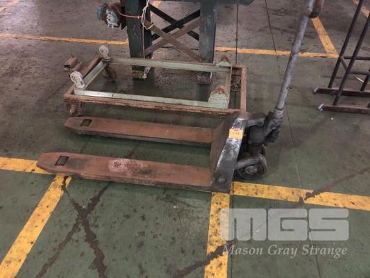 EARLY PALLET JACK & 2 x STEEL WHEELED TROLLEY