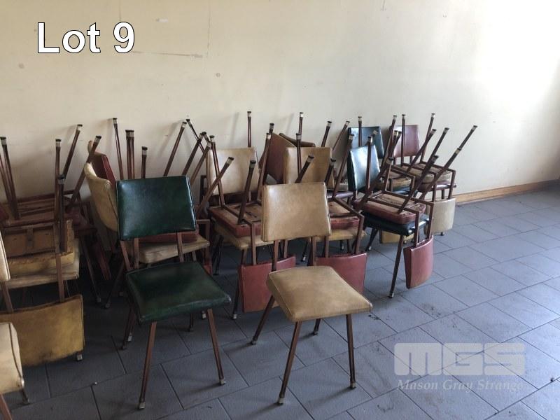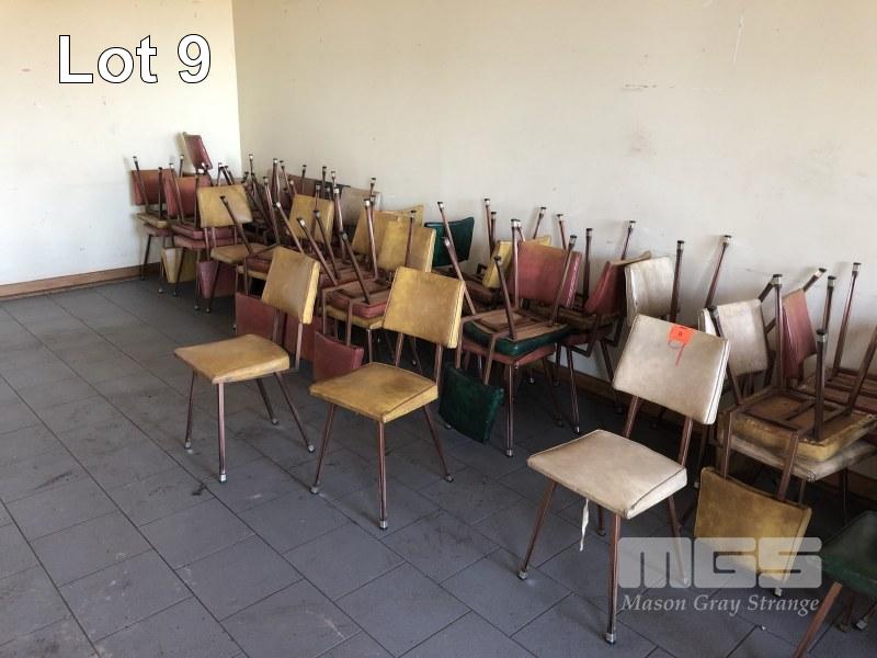 ANTIQUE DINING CHAIRS, (EX BHP), 50+, ASSORTED COLOURS