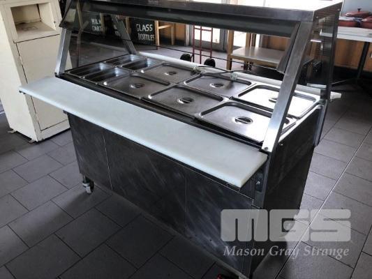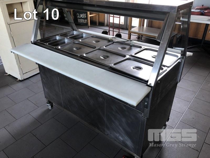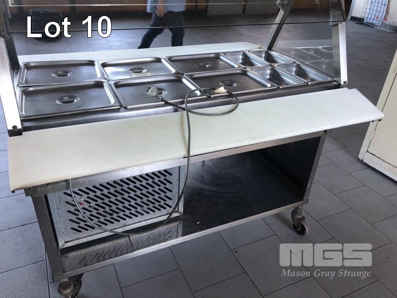 REFRIGERATED DISPLAY BAR, ROBAND, WET BASE, DOUBLE SIDED DISPLAY, CROSS FIN COOLING, 240V, SNEEZE BAR TOP, STAINLESS STEEL, 10 PAN