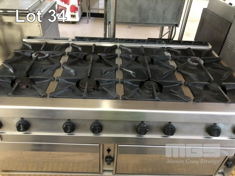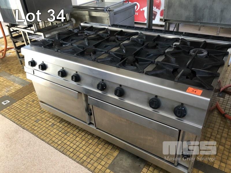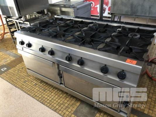 OVEN RANGE, ZANUSSI GAS, 8 BURNER STOVE, DUAL OVENS, STAINLESS STEEL CASED, 1600 x 900 x 850mm