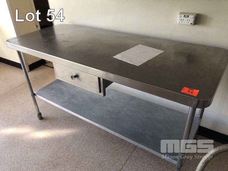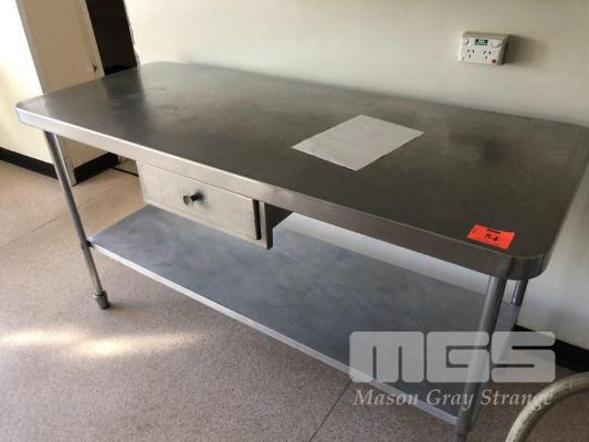 STAINLESS STEEL BENCH, 1680 x 700mm, CURVED CORNERS, SINGLE DRAWER