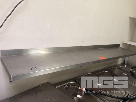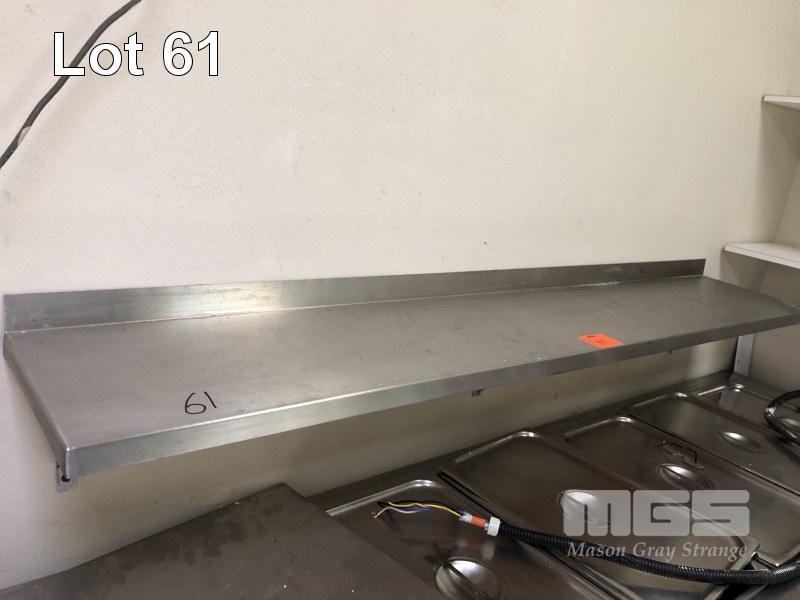2 x STAINLESS STEEL SHELVES, (IN WASH ROOM), 1200mm, 1 x STAINLESS STEEL SHELF (IN BACK ROOM), 1800mm