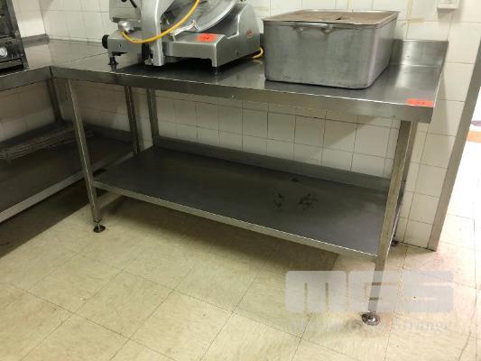 STAINLESS STEEL PREP BENCH, 1600 x 600mm, SPLASHBACK WITH BOTTOM TIER