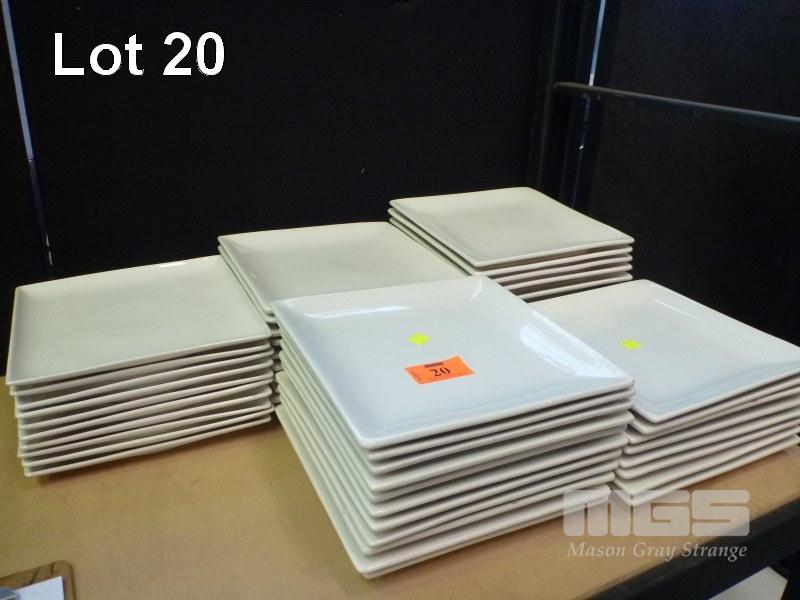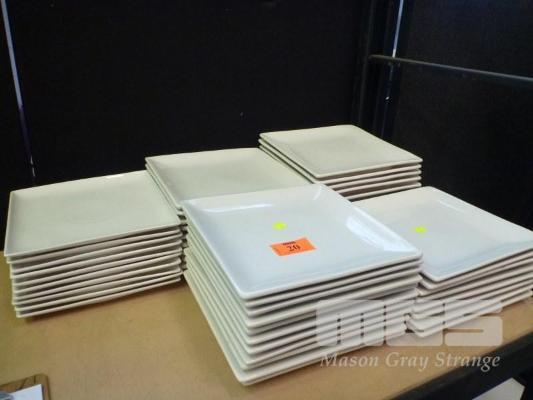 40 x WHITE, SQUARE PLATES, 26 x 26cm, SOME CHIPPED