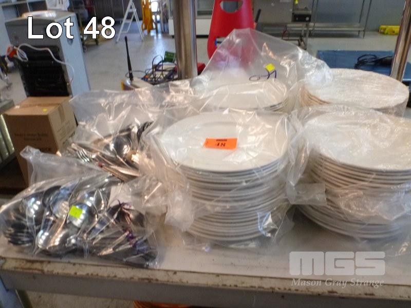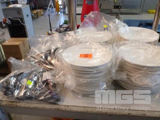 20 x PLATES, 22cm & 200 x MATCHING KNIVES, FORKS & SPOONS