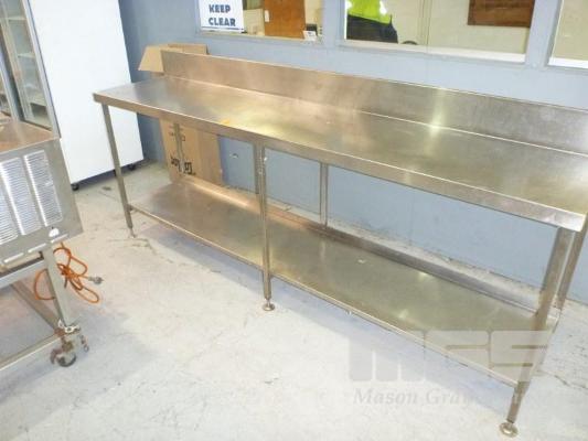 STAINLESS STEEL BENCH, 240 x 50cm, 2 TIER WITH SPLASHBACK