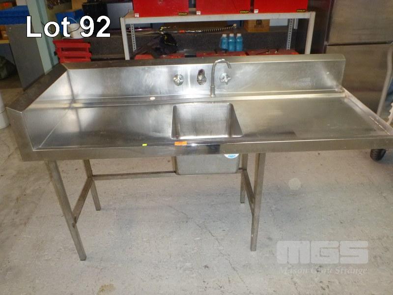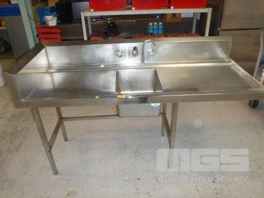 STAINLESS STEEL SINGLE BOWL SINK, 187 x 75cm WITH TAPS & SPLASHBACK