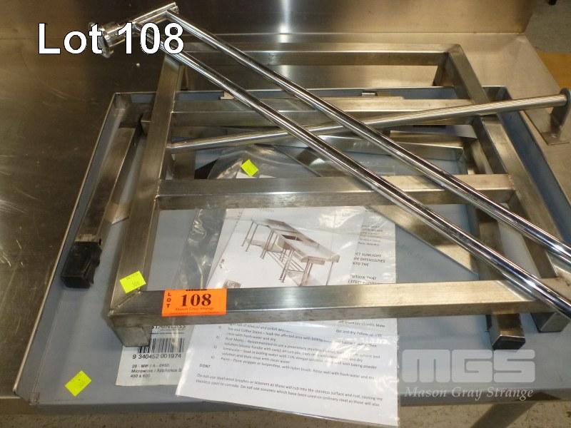 STAINLESS STEEL MICROWAVE/APPLIANCE SHELF, 60 x 45cm WITH ASSORTED STAINLESS STEEL FIXTURES