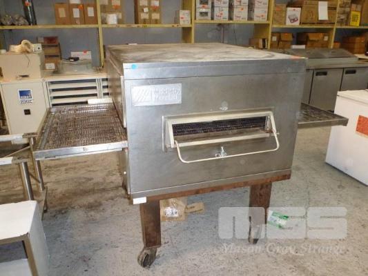 CONVEYOR PIZZA OVEN, MIDDLEBY MARSHALL MOD: PS20VL 32", STAINLESS STEEL CASED, GAS ON MOBILE STAND