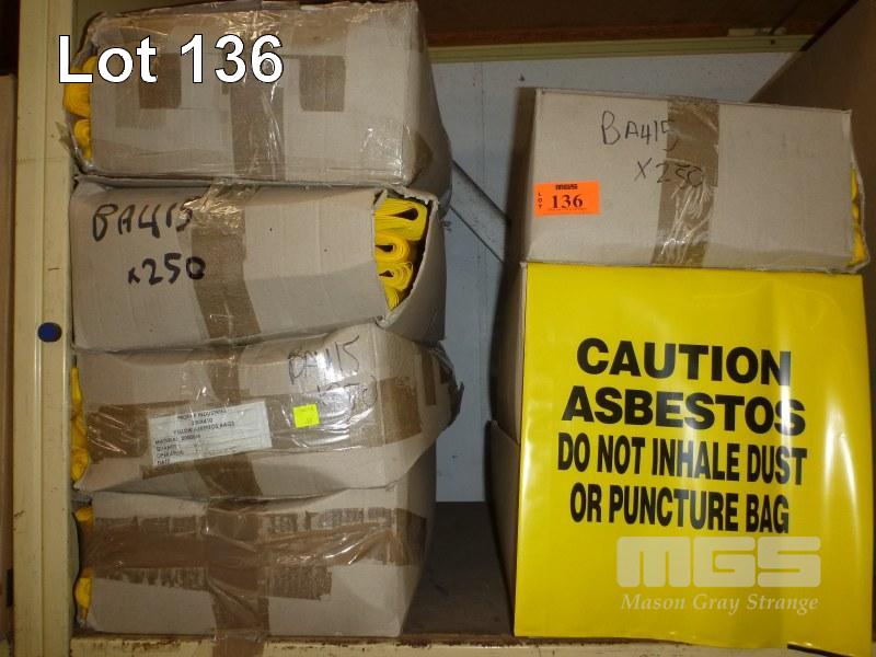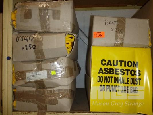 PLASTIC BAGS, "CAUTION ASBESTOS", 300 x 400mm, 7 x BOXES, EACH 250