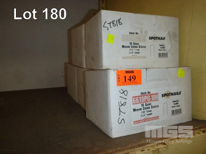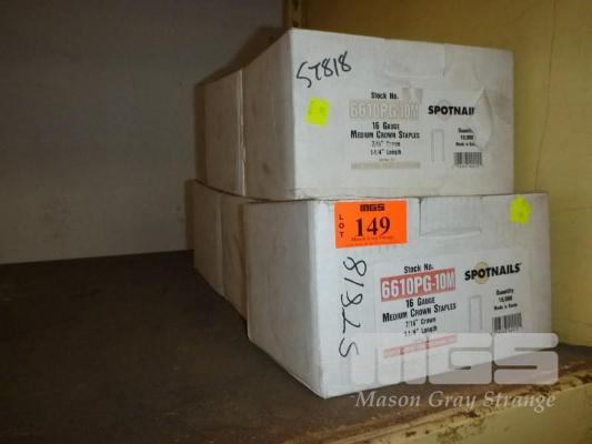 STAPLES, SPOT NAILS, MEDIUM CROWN, 1 -1/4", 16 GAUGE, 5 x BOXES, EACH 10,000