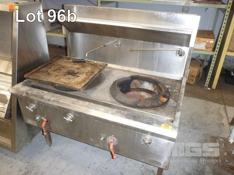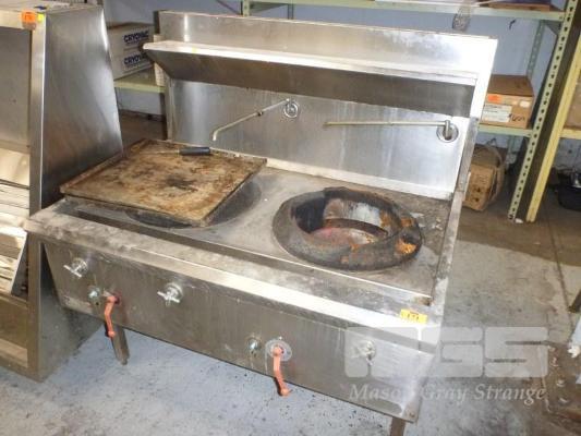 2 HOLE GAS WOK, LUUS WF-2C WITH TAPS & SPLASHBACK (POOR CONDITION)