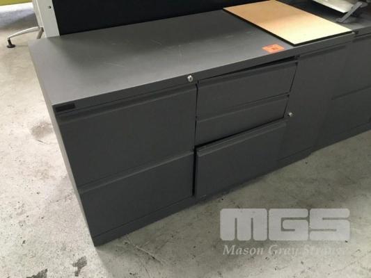 CREDENZA, GREY STEEL, SINGLE CUPBOARD, 5 x DRAWER