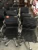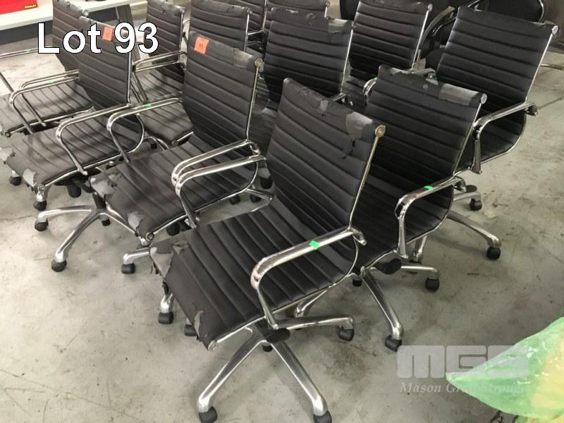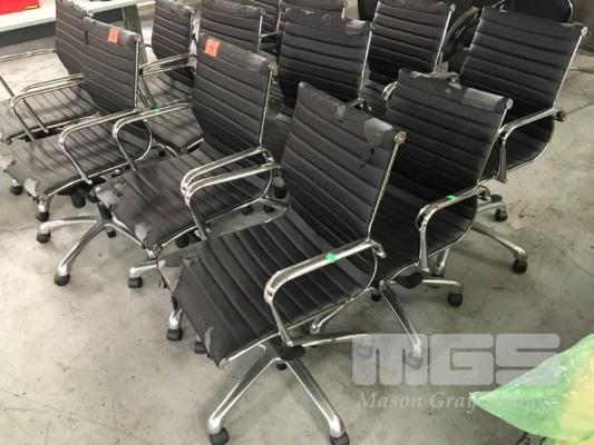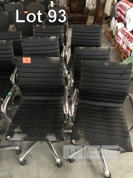 8 x OFFICE CHAIRS,CHROME STEEL FRAME WITH BLACK CLOTH TRIM, GAS LIFT, MOBILE (DAMAGED TRIM)