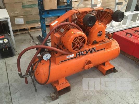 WORKSHOP AIR COMPRESSOR, PROAIR MOD: 37554 SAVAN TWIN CYLINDER, SVU-205 415V, BELT DRIVE FORK POCKETS