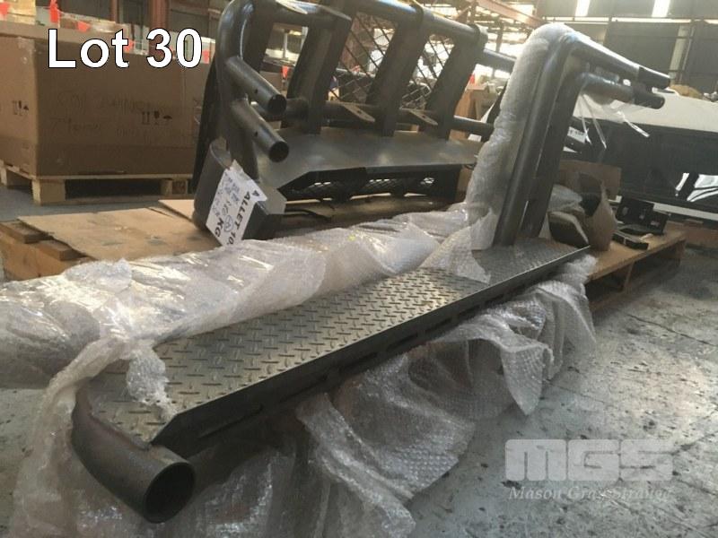 STEEL BULL BAR, TUFF BAR TOYOTA LANDCRUISER 70 SERIES, V8 WITH BRUSH BAR, SIDE STEP ASSEMBLY & BRACKETS, BOLTS, 1 x PALLET