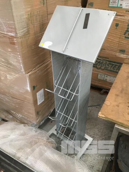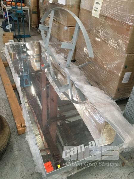 CAN-AM DISPLAY COMPONENTS INCLUDING STEEL FRAME BASE, 94 x 300cm WITH CHECKER PLATE RUBBER MAT, 75 x 305cm, PRODUCT RACK, 125cm (H) & ARCHED FRAME