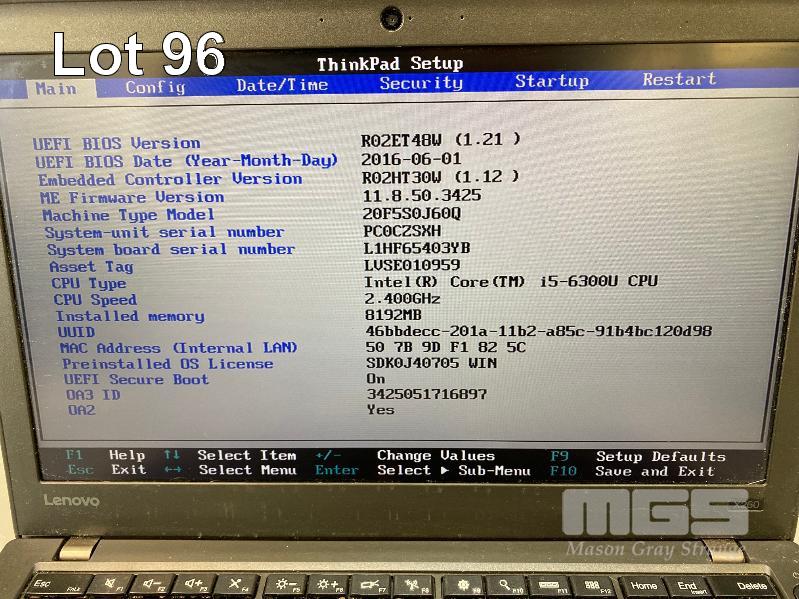 LAPTOP, LENOVO THINKPAD X260 (20F5S0J60Q), CORE i5 6300U (6TH GEN) @ 2.4GHz, 8GB DDR4 RAM, 500GB SATA HDD, 12.5" WIDESCREEN (1366x768), INTEL HD VIDEO, Wi-Fi, BLUETOOTH, WINDOWS 10 PRO INSTALLED & POWER SUPPLY S/N:PC0CZSXH