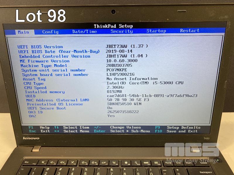 LAPTOP / ULTRABOOK, LENOVO THINKPAD T450 (20BUS03705), CORE i5 5300U (5TH GEN) @ 2.3GHz, 8GB DDR3 RAM, 250GB SSD, 14" WIDESCREEN (1366x768), INTEL HD VIDEO, Wi-Fi, BLUETOOTH, WINDOWS 10 PRO INSTALLED & POWER SUPPLY S/N:PC07NKPE