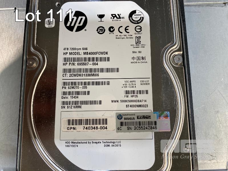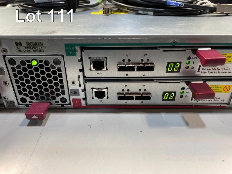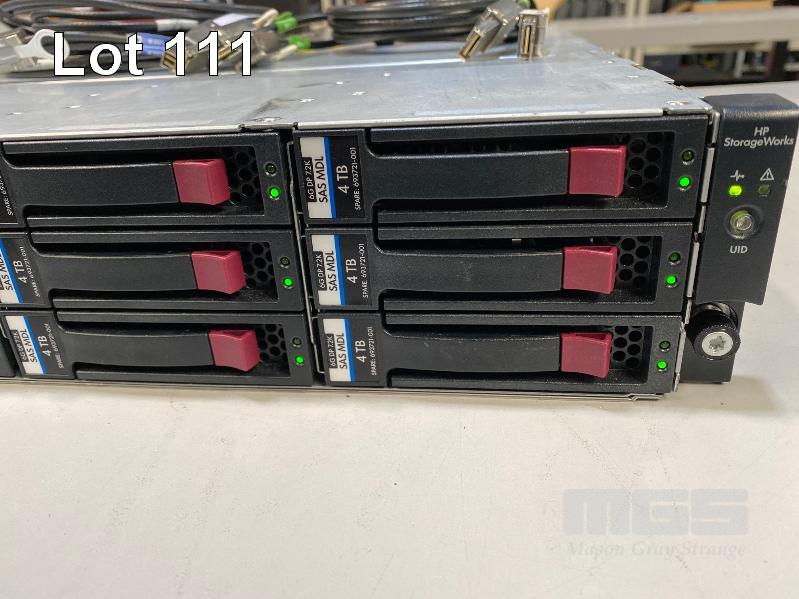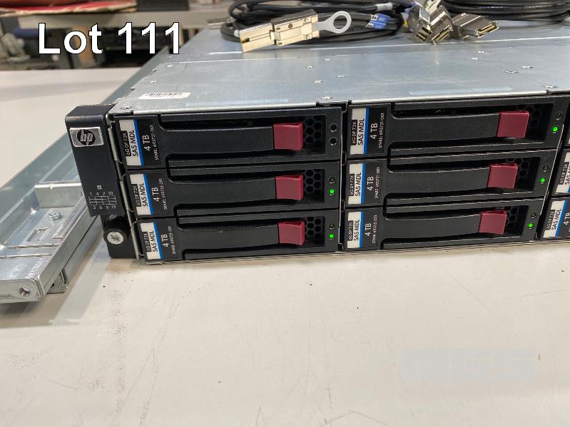 RACKMOUNT HARD DRIVE ARRAY, HP STORAGEWORKS D2600 (AJ940A), 2U, 12 x 4TB SAS HDD (2 x SEAGATE EXOS 7E8, 10 x HP), 2 x SAS CONTROLLERS (AJ940-04402), 2 x 460W PSU WITH RAILS & CABLES S/N:7CE520P0DX