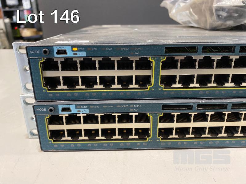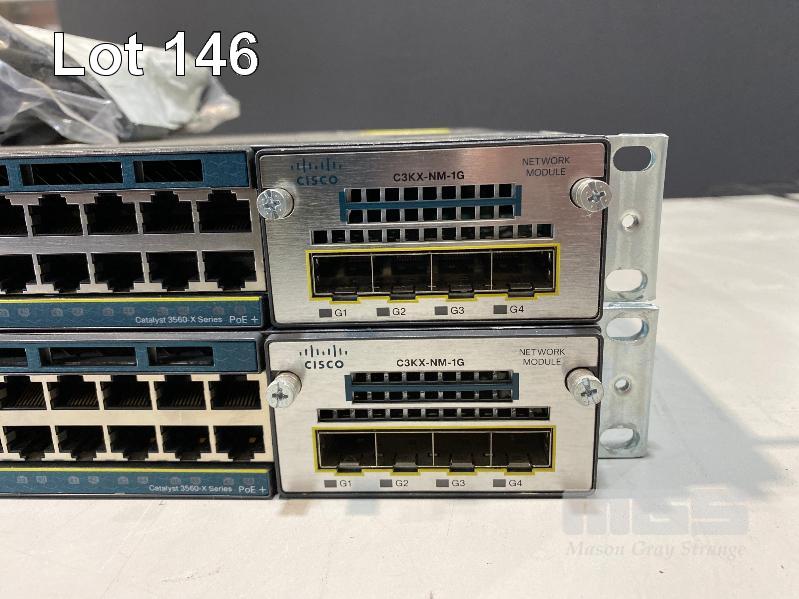 2 x CISCO CATALYST 3560-X SERIES PoE+ SWITCHES, WS-C3560X-48P-L V02 NETWORK MODULE, C3KX-NM-1G WITH POWER CABLES (CAB-9K10A-AU)