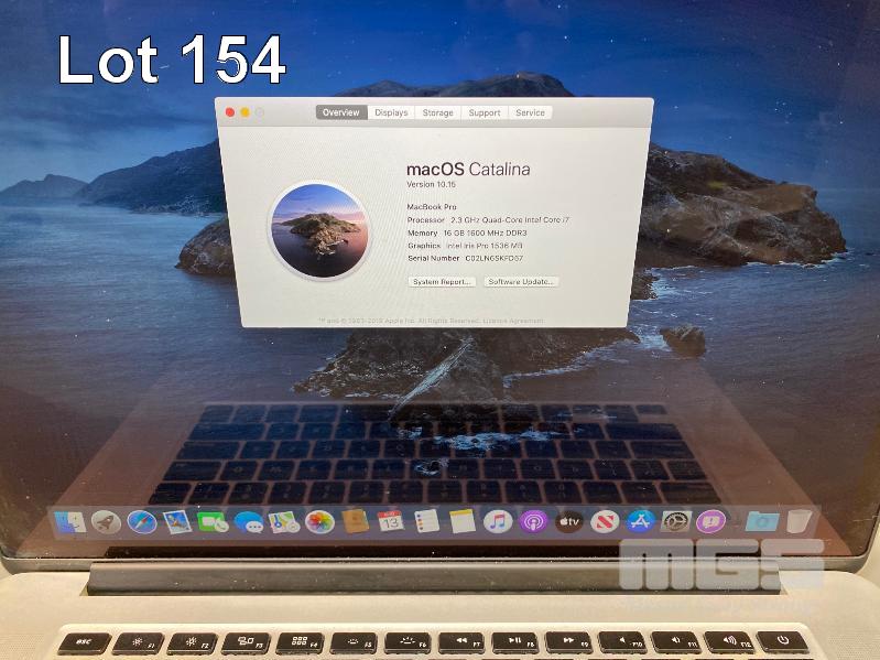 LAPTOP, APPLE MACBOOK PRO (A1398), CORE i7 4850HQ (4TH GEN) @ 2.3GHz, 16GB DDR3 RAM, 512GB SSD, 15.4" WIDESCREEN (2880x1800), INTEL HD VIDEO, Wi-Fi, MAC OS 10.15 INSTALLED (NOTE: NO POWER SUPPLY) S/N:C02LN6SKFD57
