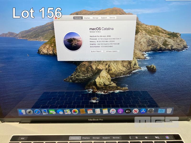 LAPTOP, APPLE MACBOOK PRO (A1707), CORE i7 6820HQ (6TH GEN) @ 2.7GHz, 16GB DDR3 RAM, 1TB SSD, 15.4" WIDSCREEN (2880x1800), INTEL HD VIDEO, 2GB AMD RADEON PRO 455 VIDEO, TOUCHBAR, Wi-Fi, MAC OS 10.15 INSTALLED (NOTE: DAMAGE TO SCREEN BOTTOM RHS CORNER, VERTICAL LINES APPEARING ON SCREEN, NO POWER SUPPLY) S/N:C02SW63EH040