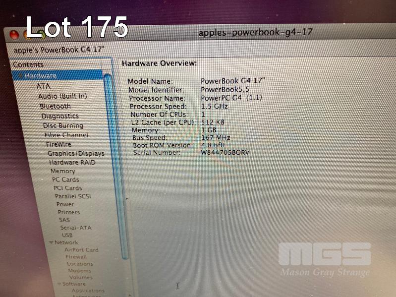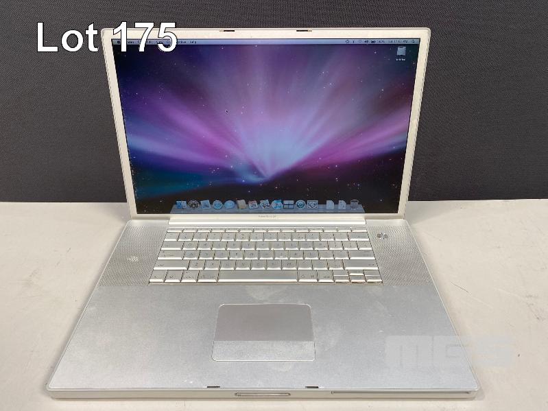 LAPTOP, APPLE POWERBOOK G4 (A1085), 1.5GHz, 1GB RAM, 80GB HDD, DVD-RW, 17" WIDESCREEN, MAC OS 10.5 INSTALLED & POWER SUPPLY S/N:W844705BQRV
