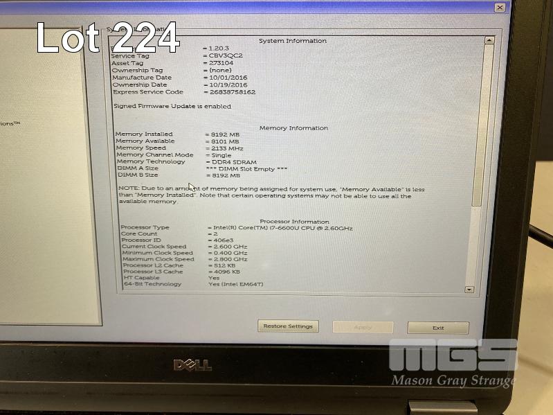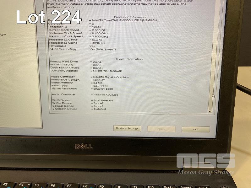 LAPTOP / ULTRABOOK, DELL LATITUDE E7270, CORE i5 6300U (6TH GEN) @ 2.4GHz, 8GB DDR4 RAM, NO HDD, 12.5" WIDESCREEN & POWER SUPPLY (NOTE: NO BATTERY) S/N:CBV3QC2
